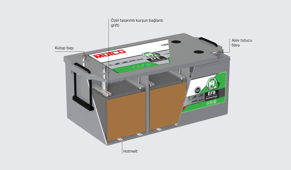 EFB Ticari aküler için geliştirilmiş aktif madde